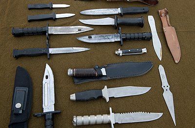 - Edged Weapons - Knives, Bayonets, swords, daggers, Axes, Spears, (metal & Rubber Stunt type)